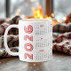 2026 calendar red photo collage coffee mug. Presenting a stylish and practical way to keep track of the year, this 2026 calendar mug features a vibrant red photo collage design. Adorned with three carefully selected photographs placed on the right side and the yer 2026 on the left, this unique coffee mug not only offers a delightful start to your day but also serves as a visually appealing calendar for the entire year. Each time you enjoy your favorite beverage, you'll be reminded of the date and the memories captured in the photos.