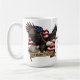 Celebrate a monumental milestone in American history with this soaring eagle commemorative mug. This striking design features a majestic bald eagle in mid-flight, wings outstretched against a backdrop of the American flag, symbolizing strength, freedom, and resilience. Clutched in the eagle's talons is a flowing banner that proudly reads "250 Years of Freedom," honoring the nation's enduring spirit since 1776. This mug is perfect for your morning coffee, evening tea, or as a patriotic display piece. Whether you're a history enthusiast, veteran or simply proud to be American, this mug is a timeless tribute to the land of the free.