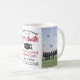 Comemore a conquista do formando com esta caneca de café vermelha, preta e branca, personalizada com 2 fotos. As imagens e todo o texto são simples de personalizar. Inclua qualquer citação inspiracional favorita, ditado motivacional, nome e grau da escola, parabéns, obrigados, mãe e pai, ou outra mensagem de sua escolha. Design apresenta um boné de conselho de argamassa preta, um nome personalizado de tipografia moderna, escola e ano de aula, e duas fotos da sua escolha, como fotos de mais velho ou imagens da cerimônia de início. Faz uma boa ideia de presente de guardiã e um complemento elegante para a decoração doméstica. Parabéns ao formando!