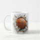 Caneca De Café 3D Laranja Basquetebol aparece através da quebra d