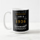 For those born in 1936 and celebrating their 90th birthday we have the ideal birthday coffee mug. The black background with a white and gold vintage typography design design is simple and yet elegant with a retro feel. Easily customize the text of this birthday gift using the template provided. More gifts and party supplies available with the "Legendary" design in the store.