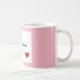 Uma caneca cor-de-rosa com a melhor mãe das palavras nunca e dois corações vermelhos.