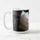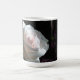 Esta foto foi tirada com uma câmera Nikon. A luz do exterior estava batendo nas pétalas exatamente direito. Roxo e flores vermelhas rodeiam a rosa. Um pouco de verde pode ser visto na foto. Esta caneca está disponível em dois tamanhos e daria um presente de excelente.