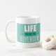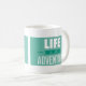 Aventura - a vida é ofertas inspiradas de uma tipografia da aventura 3 designs diferentes da pia batismal no branco sobre um fundo azul esverdeado.