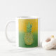 Coffee Mug com um lápis a cores detalhado, desenhado à mão, ilustrado com um abacaxi. Trabalho de arte: lápis colorido e pasta de óleo no painel. Copyright Dominic A. White.