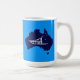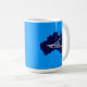 Uma simples silhueta branca de um trenó de cão e a Cruz do Sul sobrepuseram-se a um mapa azul da Austrália. Você pode escolher uma cor de fundo diferente. Quem teria mordido? Mudando de cabeça para baixo em Oz. O trenó de cachorro é bastante popular na Austrália. No Monte Hotham em Victoria há uma grande corrida todos os anos.