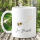 Esta caneca de café é decorada com abelhas melíferas e "Bee Yourself" na tipografia de na moda. Facilmente personalizável com seu monograma. Original Watercolor © Michele Davies.