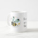 Esta caneca encantadora apresenta uma adorável abelha branca que certamente iluminará o seu dia. Com seu clássico corpo listrado de amarelo e preto, a abelha expele uma personalidade lúdica, mas carinhosa. Seus olhos meio fechados e sonolentos adicionam um toque de humor e conforto, fazer perfeito para aquelas manhãs quando você precisa de um impulso extra. As asas azuis suaves são manchadas com padrões delicados, dando-lhes uma qualidade sonhadora e leitosa que aumenta o suave apelo das abelhas. Em conjunto com a frase alegre "ocupado como uma abelha" em uma fonte na moda, esta caneca é divertida e funcional e você poderia mudar a mensagem se desejasse.