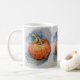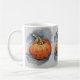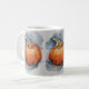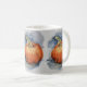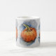 Uma adorável aquarela Pumpkin em tons de laranja com um fundo azul.