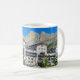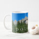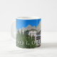 Uma bela vista das montanhas Dolomites, em Itália, impressa numa caneca cerâmica de souvenir.