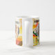 Whimsical photo mug featuring two photos of your dog or other favorites on a custom collage of abstract art. A bright and colorful mug for a dog lover.