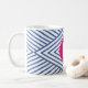 Caneca De Café Abstract Blue Stripey Pattern Pink Monogram