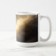 This ceramic mug features an abstract deep space nebula designed with a sophisticated palette of golden yellows, dark grays, and soft white highlights, creating a calm and atmospheric cosmic aesthetic.