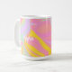 Apresenta uma pintura de abstrato que apresenta cores rosa, amarela, verde e azul