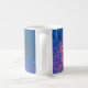 Esta caneca de café abstrato apresenta um impressão no estilo de tinta alcoólica em tons de rosa, azul e roxo.