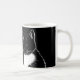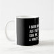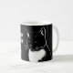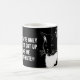 Só me levantei, me dê um minuto! Ilustração de gato branca em design de caneca preta.
