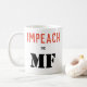 Queira o potus acusado? Está aqui sua caneca de café branco simples com que para a expressar. "ACUSE" está na rotulação peachy-vermelha de Sans Serif. "" Está na pia batismal menor abaixo, no preto. A TA está na rotulação preta enorme do estêncil. A frase é em ambos os lados da caneca.