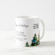 Adicione o seu logotipo Texto personalizado Mug de promoção da árvore de Natal. Árvores de Natal de cor aquosa. Insira seu logotipo no modelo e personalize o texto, o nome da empresa, o endereço e as informações de contato. Promoção de negócios ou oferta para seus clientes e parceiros comerciais durante feriados.