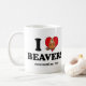 Essa caneca engraçada de castor lê: "Eu amo castores de preto com um bonito castor de desenho sobre o coração vermelho." Um presente de mascote de equipe bonito para uma escola com senso de humor.