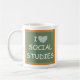 Este produto apresenta uma imagem de um quadro com "I [coração] ESTUDOS SOCIAIS" em letra branca. Este produto é um presente de excelente para professores de estudos sociais ou entusiastas.