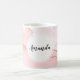 Uma caneca com uma design elegante e elegante. Cores de água rosadas cor-de-rosa com um aspecto sutil de agata de mármore e fita de ouro com brilho dourado colado no meio. Um círculo por cima com seu nome dentro.