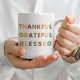 Sip em estilo com este agradecimento ・ Grata ・ 🍂 bênção ☕. Projetado em cores ousadas inspiradas no outono, é perfeito para as manhãs de Ação de Graças, noites de outono aconchegantes, ou como um presente sazonal pensável. Um moderno design de tipografia mínima que adiciona calor e gratidão ao seu ritual diário de café ou chá. Excelente para cozinhas de fazenda, encontros de férias ou como presente de hospedeira! 🎃 ✨