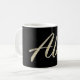 Eine sehr schöne edle personalisierte Tasse / Kaffeetasse / Teetasse im whitegold Lettering Look auf schwarz für Alex.