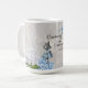 Uma bela vintage Alice no País das Maravilhas, em preto e branco, e seu vestido azul familiar aparece neste design alegre e nostálgico com a citação, "Curiouser e curioso! gritou Alice", borboletas azuis vintage e lindos híbridos de safra azul e branca num fundo de madeira rústica macio e tonto para fazer uma linda caneca de cerâmica temida floral literária. Itens correspondentes e outros itens de Alice no País das Maravilhas e Alice "curiouser" estão disponíveis na minha loja Zazzle.