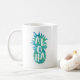 A caneca de verão apresenta a saudação havaiana "aloha" em letras brancas manuscritas, inscritas como dentro a ilustração do abacaxi tropical em aquarelas brezy turquoise.