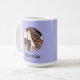 Esta adorável design mostra uma imagem de Art Nouveau de Alphonse Mucha de uma adorável mulher com cabelos fluidos e uma terra de flores de rosa claro contra roxo violeta mole. Mucha criou uma bela arte, muitas vezes para anúncios e posters, de mulheres e flores em trajes floridos com cabelo gracioso. Esta imagem de dominio público faz parte de sua obra chamada Vitril pour la façade de la boutique Fouquet Vlll. Esta imagem aparece na frente e atrás da xícara. Escreva o seu nome na seção Personalizada ou elimine o texto do marcador de posição se não quiser texto com a imagem.