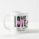 Esta imagem simples mostra a palavra "amor" em todos os bonés, com dois corações acima dela e dois corações abaixo. O texto "Onde os corações encontram sua casa" está escrito embaixo dos corações. A mensagem geral é que o amor é um lugar onde as pessoas se sentem seguras, aceitas e apoiadas.