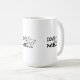 Ame o texto e o desenho de um gato engraçado com olhos verdes. Formatos redondos e produtos de padrão em série para qualquer pessoa. Não se esqueça de escolher um estilo a partir de um menu em uma página de produto. Uma caneca de café engraçada para você