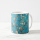 Uma caneca de café de arte com Vincent van Gogh, Blossoming Almond Tree (1890), uma pintura a óleo do período impressionista postado. Uma de suas pinturas mais conhecidas. Primavera Blossoms num lindo fundo azul.