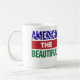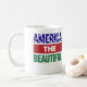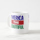 Patriotic typography design featuring the words "America The Beautiful" with star and topographical map textures.