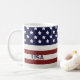 América Flag USA Pattern Coffee Mug, Blue, red & white fireworks e a bandeira americana são mostradas em um fundo azul para celebrar o Dia da Independência. Feliz 4 de julho, Sacudir o final do nosso feriado patriótico de verão, convidando-o para ver a correspondência de volta. Na moda Coffee Mug para um churrasco comemorativo do dia 4 de julho, festa do dia do trabalho ou qualquer festa patriota. América Flag com faixas vermelhas, vermelhas e brancas e estrelas brancas sobre fundo azul marinho. As estrelas representam os Estados da América. Ideal para vestuário, decoração doméstica, acessórios e presentes. Mostre seu patriotismo nos EUA no dia 4 de julho ou no Dia do Memorial ou em qualquer evento esportivo. #puleceblanket #americano #usa #patriota #esportistas