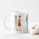 A amizade cita caneca com duas ilustrações de duas amigas moças andando e conversando e pegando uma selfie, dois corações, e uma frase de Ralph Waldo Emerson escreve: "Um amigo pode muito bem ser considerado a obra-prima da natureza." Para amigos de uma amizade verdadeira e testada no tempo, que sabem como esse sentimento é verdadeiro. Presente de excelente para melhores amigos / BFF Você pode manter as imagens atuais ou substituí-las por duas fotos verticais próprias.