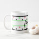 Amigos são escritos em um centro de script preto de canecas. Formas geométricas coloridas com faixas pretas e verdes, e bolinhas cor-de-rosa macio, verde-menta e pretas. O ar sente um padrão divertido para as estações de primavera ou de verão. Design de arte original © TamiraZDesign. www.zazzle.com/tamirazdesigns