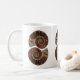 Um design criado de imagens de fósseis de amonite é impresso em ambos os lados e no centro dessa caneca. Uma caneca de excelente para amantes de fósseis, rochas e geologia. Imagem copyright 2012 de Margaret E. Cmelik.