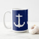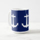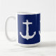 Café de âncora na moda / Xícara de chá para adicionar à sua coleção de bebidas. Um presente/ideia legal para todos que amam itens de qualidade, vibrações positivas, design personalizado, coisas únicas, navegação etc. Azul branco. Altere a cor de fundo (azul) para se adequar ao seu estilo. Iate, barco, navio, oceano, natação, pesca, pescador, marítimo.