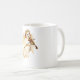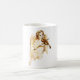 Uma caneca de café com uma doce imagem de um anjo tocando violino com flores em seu cabelo. Esta imagem vintage parece curada e desbotada das mãos do tempo, e tem um tom amarelado vestido.