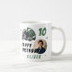Foto do Cartoon de Capacetes de Futebol, Aniversário Coffee Mug. Caneca de aniversário divertida e moderna. Apresentando uma ilustração ousada de um futebol e capacete em verde e preto. Adicione sua foto, nome e idade.