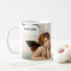 Uma caneca de café engraçada com o detalhe icônico do anjo de A Madonna Sixtina de Rafael, com um toque moderno. Perfeita para amantes de café, fãs de arte e qualquer pessoa que precise de cafeína para funcionar.