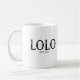 Design de caneca de café Lolo com ano de fundação apresentando uma fonte preta estampada em um fundo branco. Clique em personalizar para editar a cor do fundo!. Visite nossa loja para ver esta caneca em uma grande variedade de nomes de avôs.