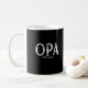 design de caneca de café Opa com um ano estabelecido com uma fonte marcada em branco sobre um plano de fundo preto. Clique em personalizar para editar a cor do plano de fundo!. Visite nosso compro para ver esta caneca em uma grande variedade de nomes de avô.