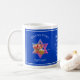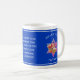 Na moda azul ROSH HASHANAH - Caneca de café judia de Ano Novo, mostrando uma Estrela de David com uma tigela de maçãs e um prato de mel. Acima está a saudação SHANA TOVA, escrita em tipografia azul, seguida por ROSH HASHANAH no texto hebraico no fundo. A design é repetida nas costas, e no meio existe uma mensagem e um nome personalizados, que atualmente diz "Que maio do ano seja doce com a bondade de Elohim". TODO O TEXTO É PERSONALIZÁVEL, para que você possa criar seu próprio texto e ortografia preferidos (por exemplo, L'Shanah Tovah), e adicionar seu nome, com modelos fáceis de usar. Escolha entre uma ampla seleção de cartões de comemoração judaicos personalizáveis e na moda, projetados por Designs bereanos.
