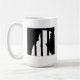 Caneca de café anti-espetáculo para amigos racionais e pró-democracia que não votarão no criminoso. Silhueta negra e branca de Trump atrás de bares na cadeia. Anti Trump art para parar Trump em 2024!