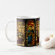 vintage renaissance stred glass design em multicores com maria e anjo gabriel.