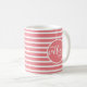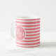 Comece o seu dia com pensamentos positivos! O design moderno e fofo apresenta a citação motivacional "Apenas Boas Vibrações" em letras brancas no nosso padrão de listras corais e brancas em uma caneca de café. O design é visível para uso com a mão direita ou esquerda, com as palavras visíveis de ambos os lados.