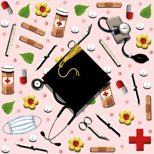 Caneca com tema médico, com material de enfermagem em fundo rosa. Para personalizar o texto de edição para adicionar o nome da enfermeira.
