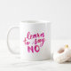 Aprenda a não dizer nenhuma citação inspiradora. Citação inspiradora rosa escrita à mão sobre canecas.